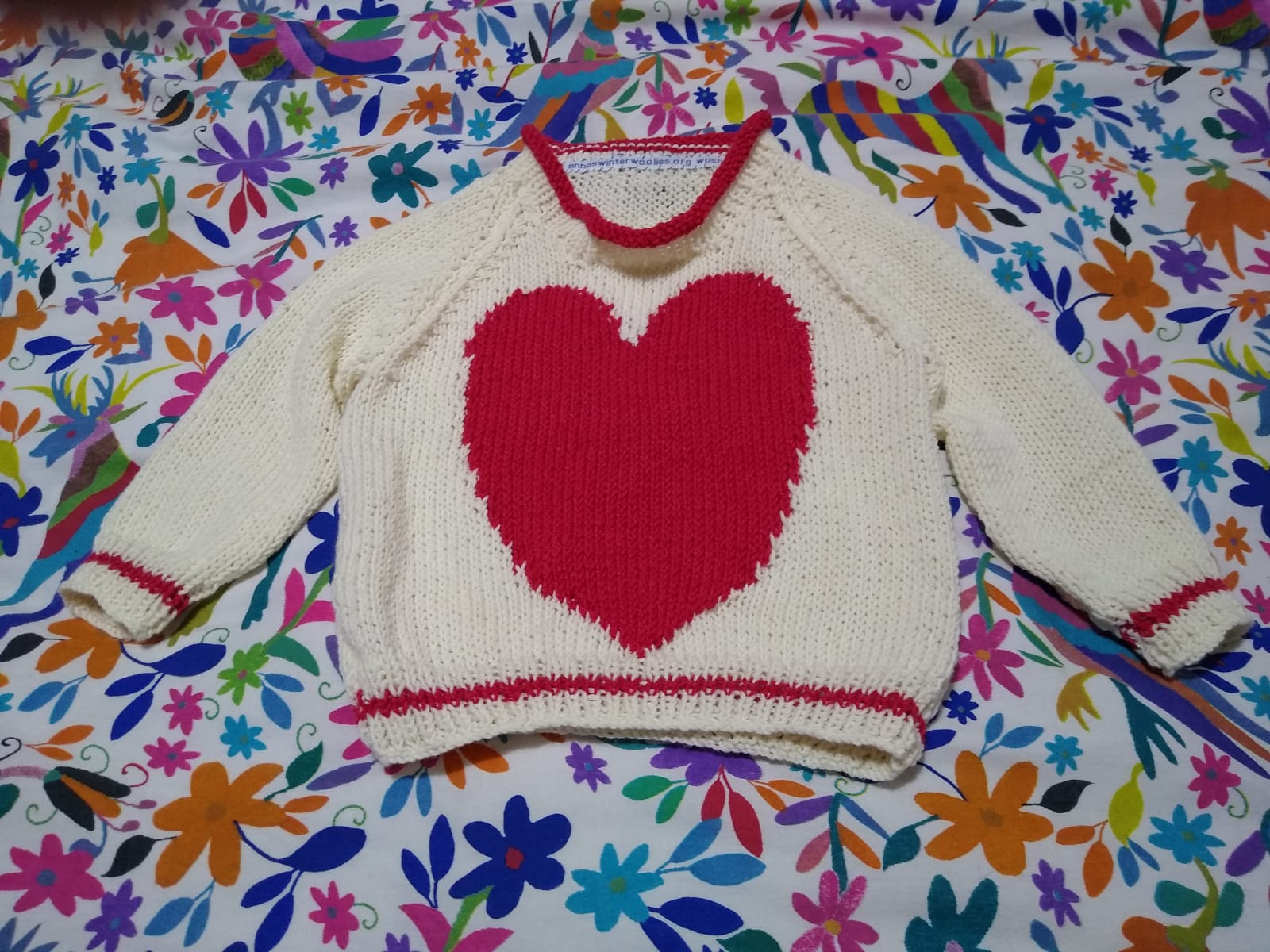 We received a jumper from Anna’s Winter Woolies. The wide neck was so helpful when dressing a wriggling toddler.