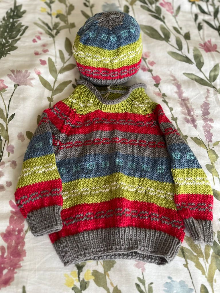 The Fair Isle jumper hats are available in Pastel & Bright Colour way.