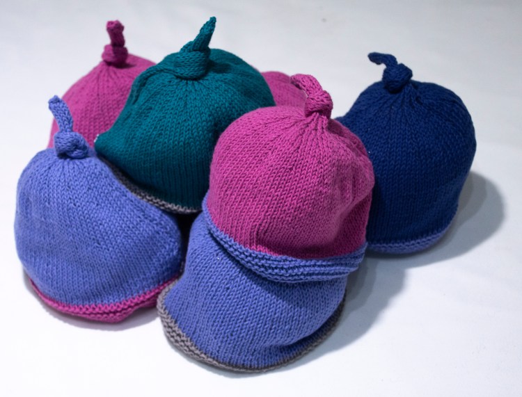 - These hats are knitted in 100 per cent cotton yarn & make an ideal gift for the new babe! Sizes vary from 3 months to three years. Please specify.