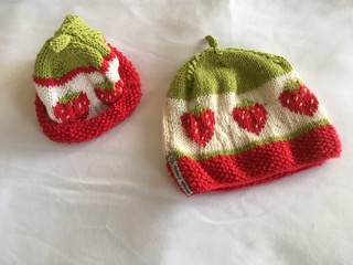 The Strawberry hats are £17.50 including postage and packing. The strawberry hats are made of 45% cotton & 55% wool.
