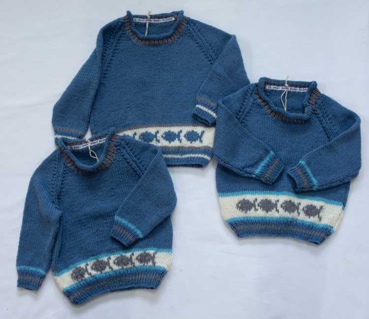 The Fish Collection comes in a luxury cotton/ wool blend yarn.You can choose blue or silver fish!